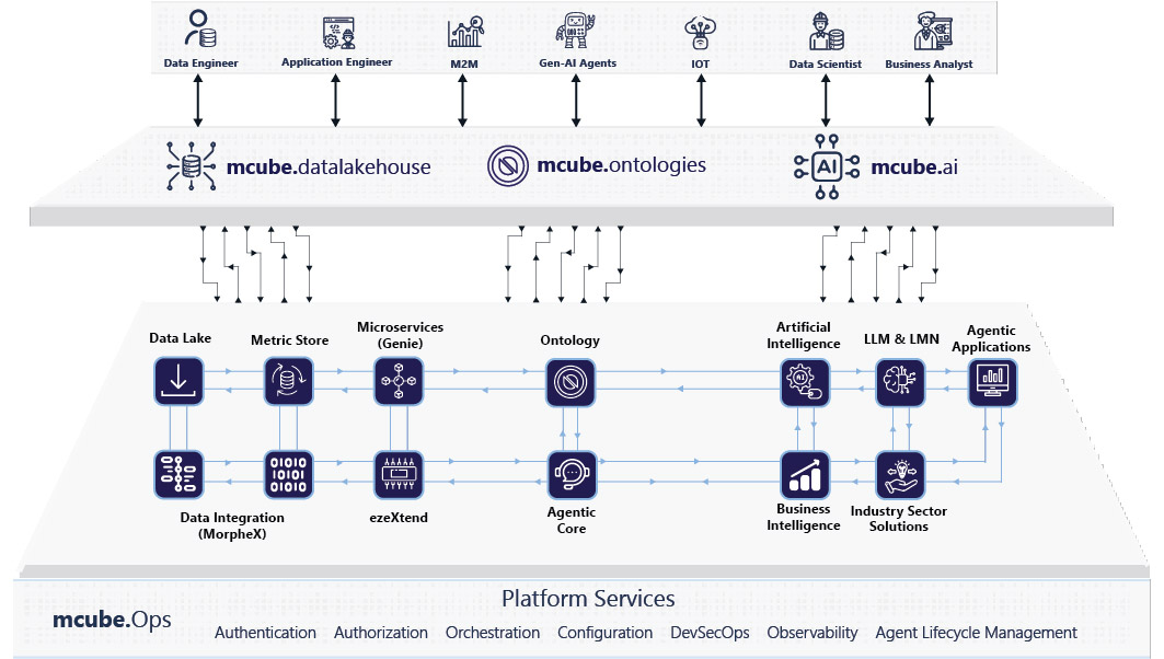 mcube™ is a unified platform that brings together data, semantics, and AI to enable enterprises to build and operationalize intelligent solutions at scale. Integrating mcube.data, mcube.ontologies, and mcube.ai, it provides an end-to-end environment for data integration, semantic modeling, and advanced AI capabilities. With low-code tools, Agentic AI, and built-in governance, mcube™ empowers both technical and business users to accelerate innovation and insight-led decision-making.